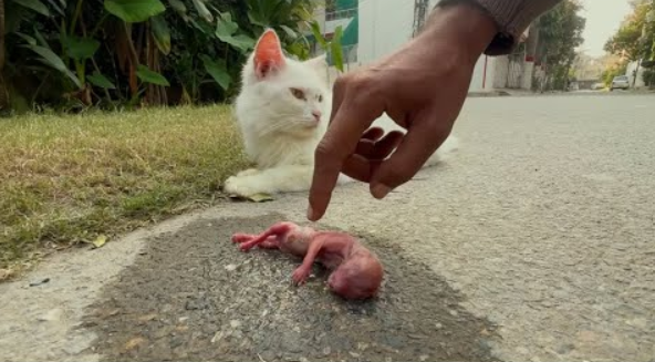 In the early hours of a chilly morning, a heartbreaking discovery was made behind an apartment building. A newborn kitten, no bigger than a human thumb, had been abandoned and left alone on the cold ground. He was premature — hairless, eyes shut, and too fragile to cry loudly. His tiny body barely moved, but he was alive.