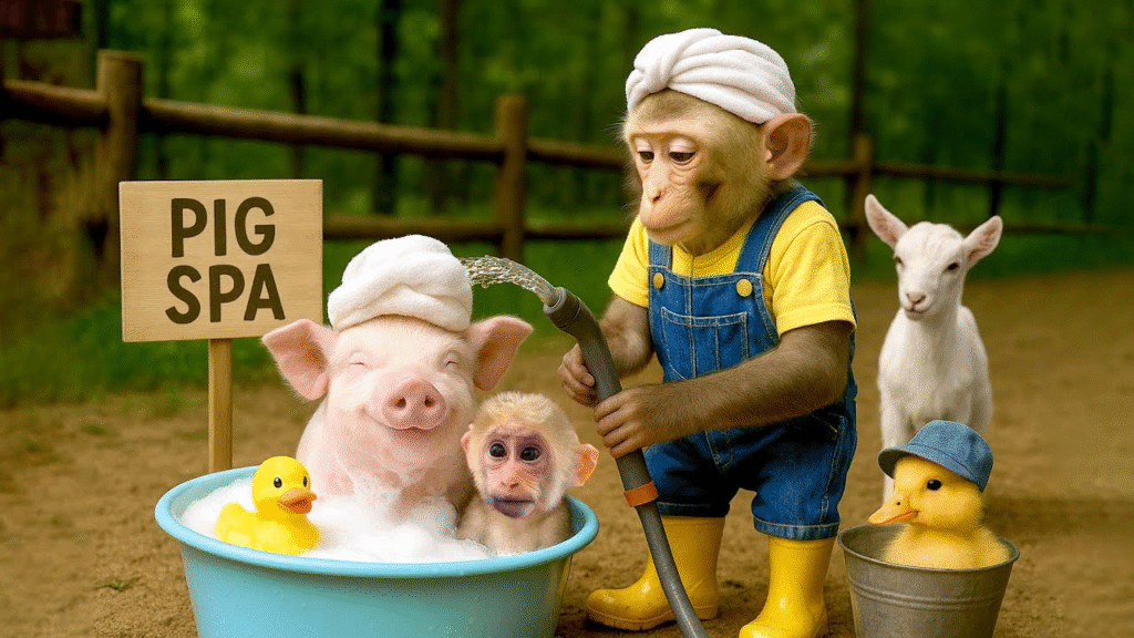 At the edge of a nearby stream, they paused to dip their toes into the cool water. Bibi splashed playfully, and LaLa joined in, both of them laughing until their cheeks hurt. They spotted frogs, skipped stones, and made little boats out of leaves, racing them down the current like childhood champions of nature.