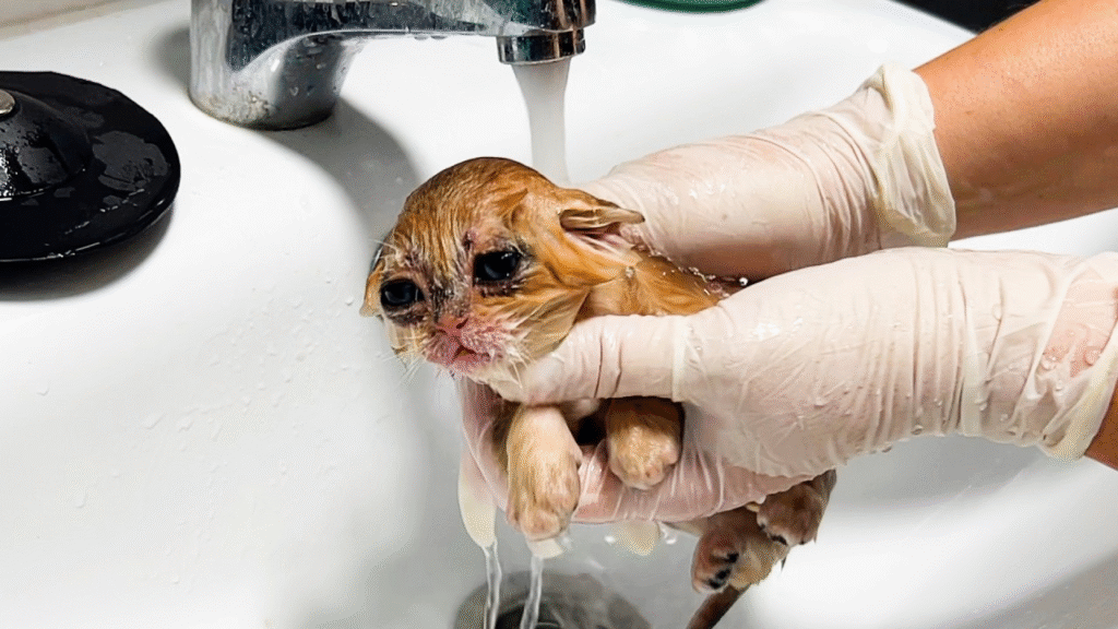 He needed a bath—not just for cleanliness, but to help him feel more comfortable as he starts his recovery journey. Giving a sick kitten a bath is always a delicate process. You have to keep them warm, handle them gently, and make sure they don’t get chilled or stressed.