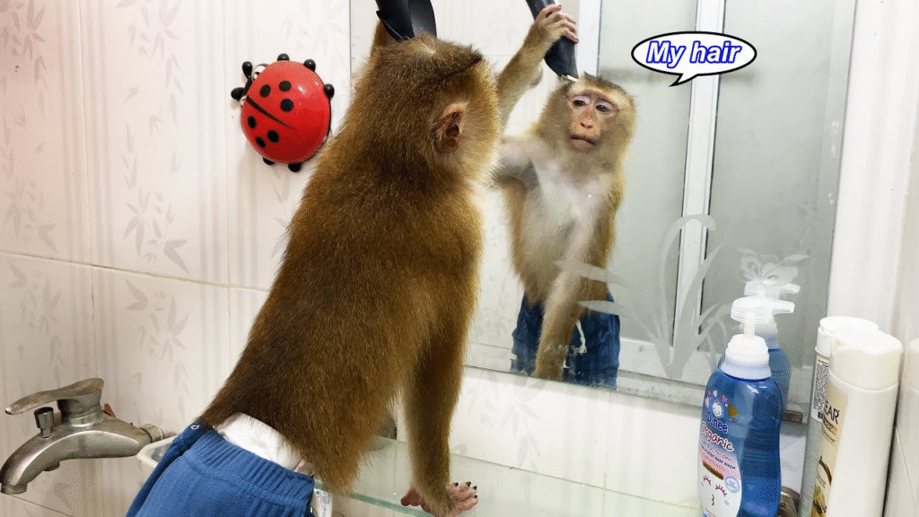 Monkey Lyly couldn’t recognize herself in the mirror when she woke up and her actions afterwards