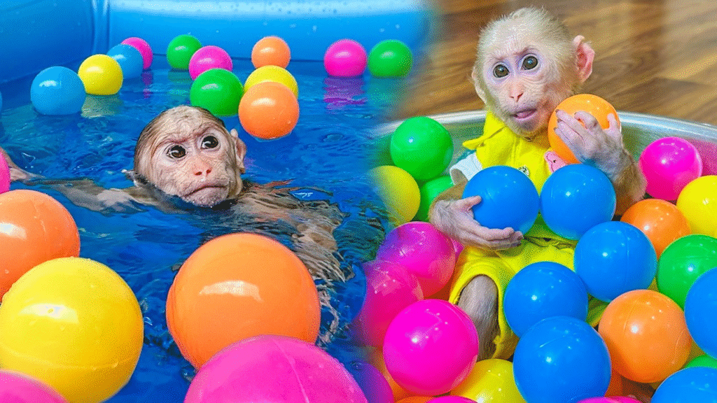Today was a big day for Monkey Lala! Her eyes lit up the moment she saw the brand-new pool filled with colorful plastic balls. The sun was shining, the weather was perfect, and her playful energy was bouncing even higher than the balls themselves!