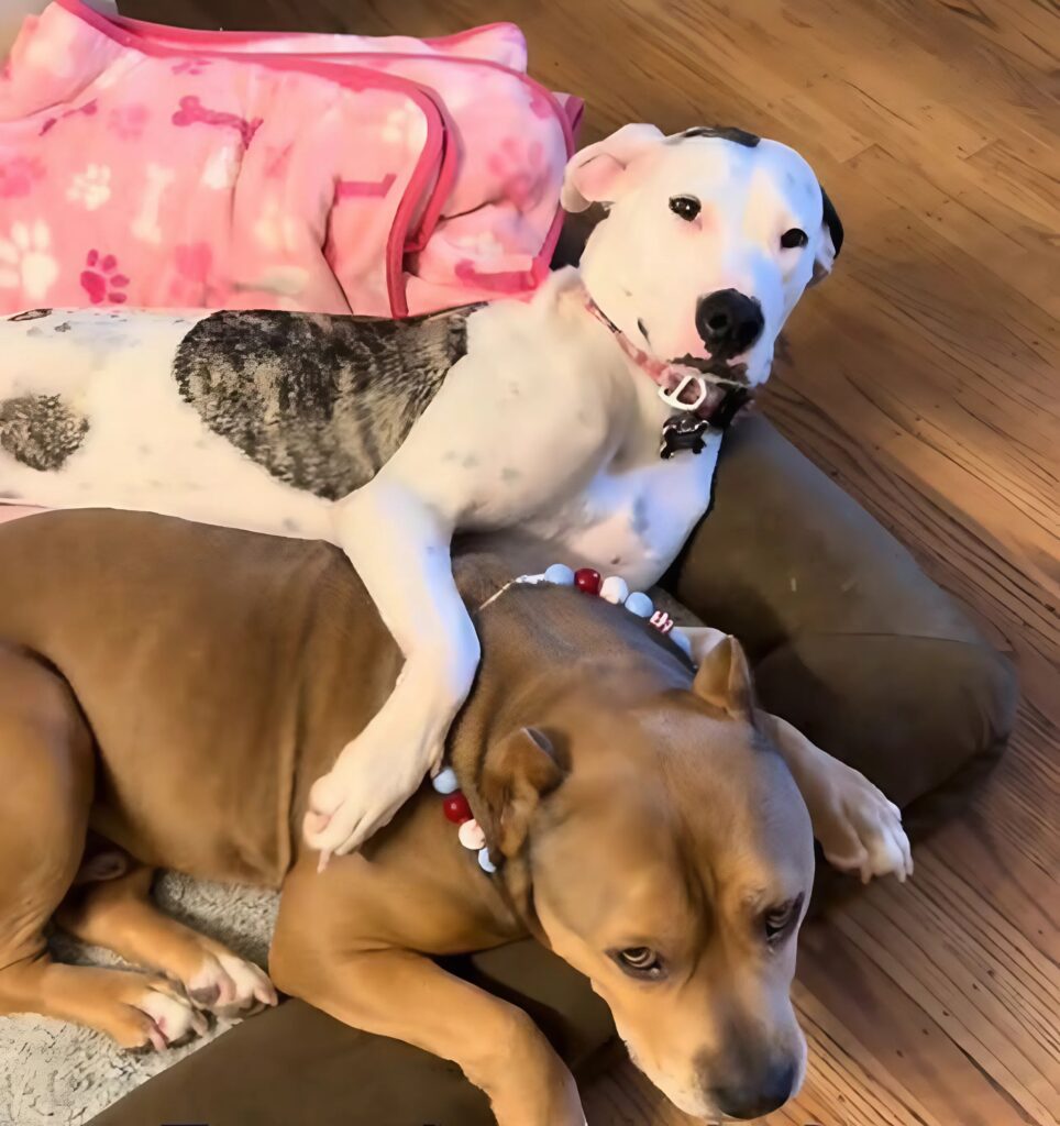 One morning, I sat quietly in the kitchen, coffee untouched, thinking of all the times Chooch had rested his chin on my knee as I drank it. Out of nowhere, CiCi trotted in, jumped onto the bench next to me, and put her head gently in my lap—almost the exact same way. It broke me and healed me at the same time.