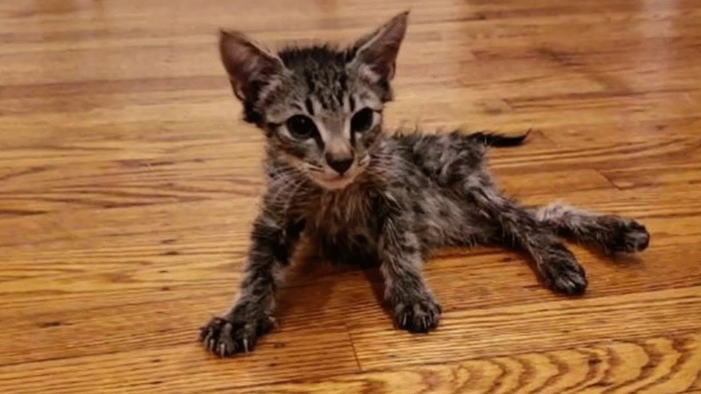 When a tiny kitten was found abandoned by the roadside, she was barely clinging to life. Her body was weak, and heartbreakingly, her back legs wouldn’t move at all. The vet said she was likely paralyzed due to a spinal injury. Many thought she would never walk again. But this little kitten—whom her rescuers lovingly named Hope—had a spirit far stronger than her fragile body.