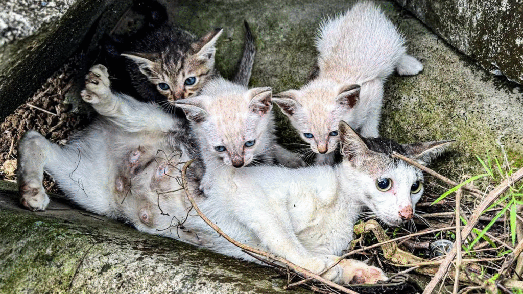 This story reminds us how many street cats fight for survival daily. With kindness and care, lives can be transformed. If you ever find a cat family in danger, approach with calmness, offer food and shelter, and seek help from local rescues. Every act of rescue brings hope—and often, a second chance at life.