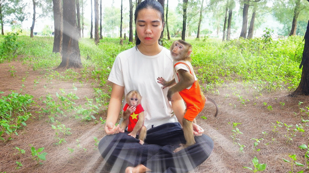 Monkey Meditation in the Forest – Pupu & Poki Follow Mom’s Peaceful Path