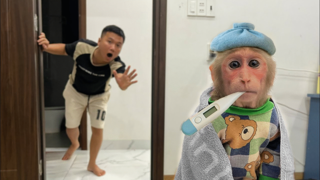 Cubis, our clever little monkey, is full of surprises—and today, he outdid himself! From the moment he saw Dad busy with chores and not paying much attention to him, Cubis decided it was time for a dramatic plan. With a small groan and a slow shuffle, he plopped down on the floor, placing a tiny hand over his forehead like a seasoned actor.