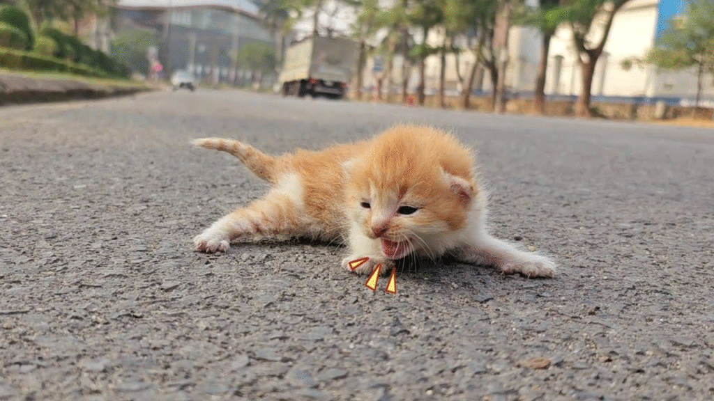 On a quiet afternoon, as I was walking along the side of the road, a faint meowing caught my attention. At first, I thought it was a bird or maybe a distant cry of another animal, but as I drew closer, I saw a tiny bundle of fur hidden behind some dry grass. It was a newborn kitten, crying out desperately — calling for its mother who was nowhere to be seen.