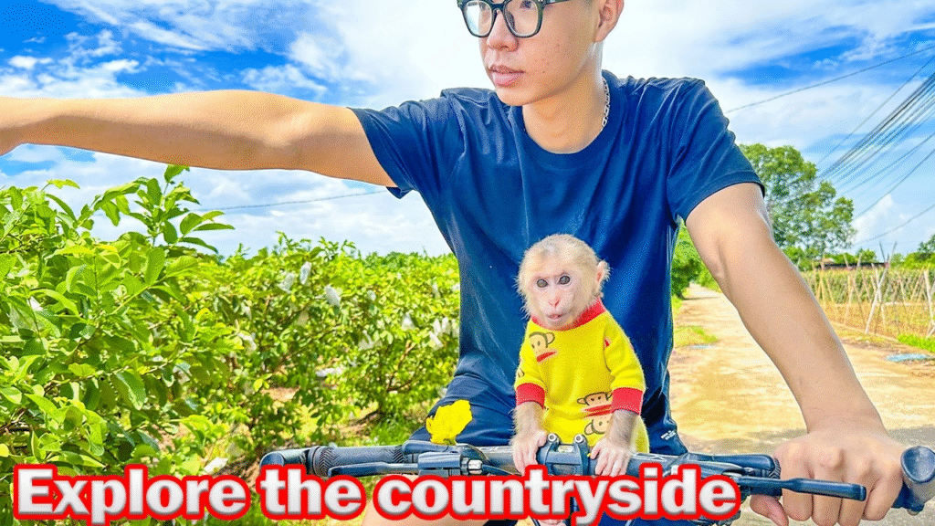 After many busy days apart, today was a special one for Lala. CEO Kien, her beloved companion, finally had a free day and decided to take Lala on a peaceful adventure through the countryside. The moment Lala saw Kien with his familiar hat and camera, she leaped with joy, her tail wagging with excitement.