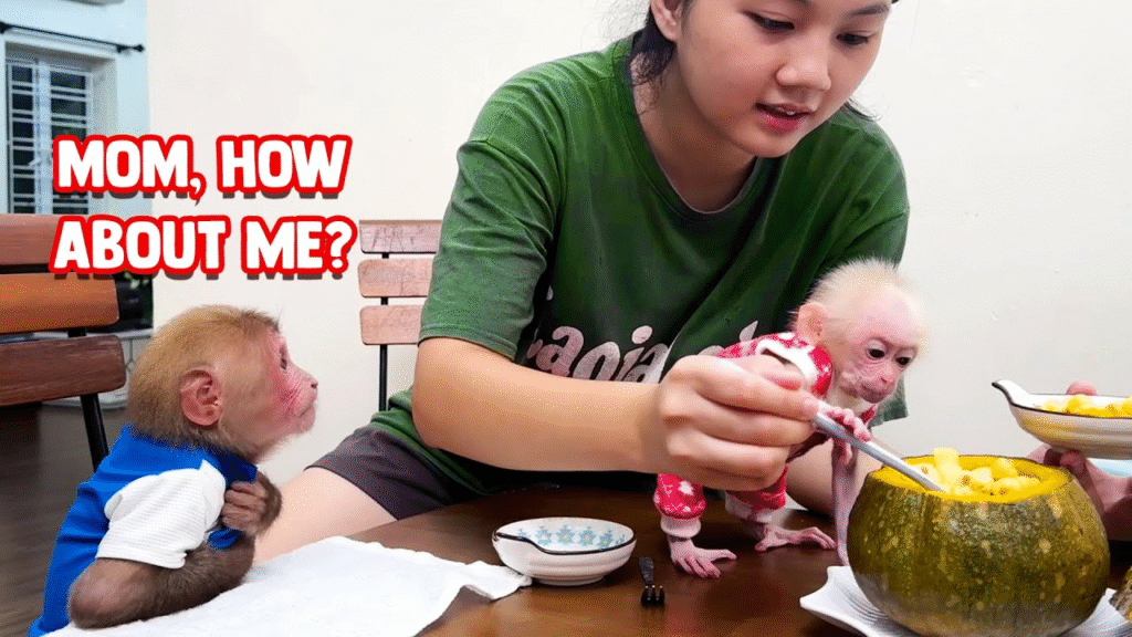 Mom was humming softly while slicing vegetables, carefully preparing a special meal just for LaLa. LaLa had been feeling a bit under the weather lately, so Mom wanted to make something extra nutritious for her. BiBi, however, didn’t understand the delay — all she knew was that her stomach was rumbling and her food wasn’t coming fast enough!