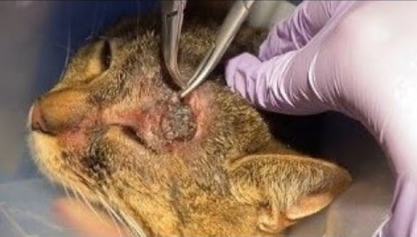 It started with a soft lump on the side of her head—barely noticeable at first. The cat, a sweet and affectionate stray we’d been feeding for weeks, didn’t show much discomfort. But as the days passed, the lump grew larger, and a small hole appeared at its center. That’s when we knew something was seriously wrong. After a closer look, we suspected it was a Cuterebra—a botfly larva—embedded deep beneath her skin.
