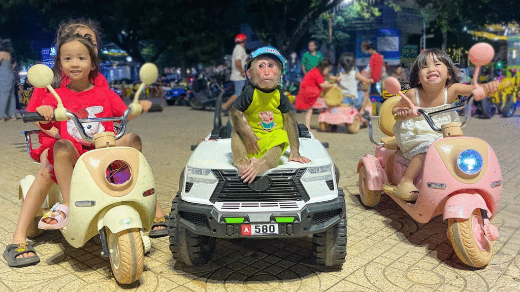 It was a warm and peaceful evening when little Cubis the monkey excitedly grabbed his tiny backpack. Tonight was special—Dad had promised a night trip to the park! As the sun dipped below the horizon, Cubis clung to Dad’s hand, his eyes wide with curiosity and excitement.