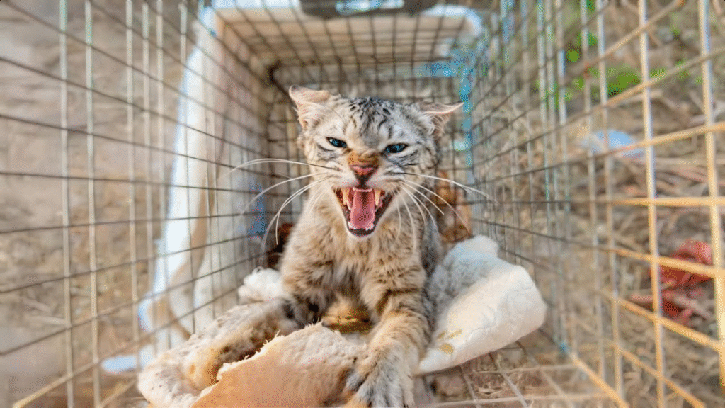 One gentle rescuer named Mia, experienced with feral cats, sat a distance away each day, talking softly, never approaching. Day by day, the mother cat began to sense that not all humans were threats. Still, she didn’t let her guard down. Even as her kittens grew and toddled awkwardly outside the safety of the nest, she kept a close eye, always ready to pounce if anyone got too near.
