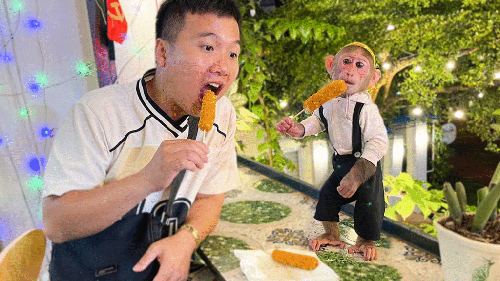 From the moment they walked through the restaurant doors, Cubis held himself with surprising elegance. He sat up straight in his chair, looked around curiously, and gave the waiter a polite little wave. The other diners couldn’t help but smile at the sight of the well-dressed monkey sitting at the table like he truly belonged there.
