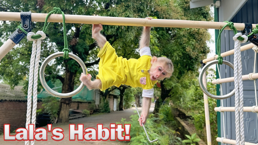 Lala, the ever-energetic and health-conscious monkey, has developed quite the daily routine. Each morning, like clockwork, she stretches her little arms, rolls her shoulders, and starts her workout. Whether it’s jumping, climbing, or even mimicking yoga poses she’s seen her human companions do, Lala is serious about staying fit. But lately, she’s been growing bored of doing the same stretches in the living room. That’s when she had an idea — a big one.