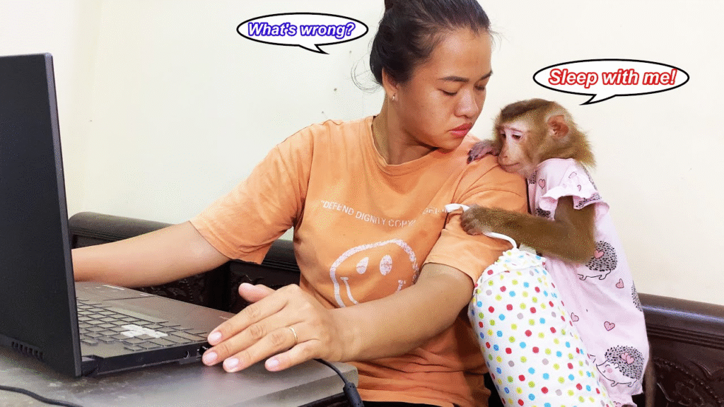 It was a quiet night, the forest gently whispering in the wind, but for little Monkey Lyly, sleep felt impossible. She curled herself tightly on a soft blanket in her enclosure, her small body shivering despite the warmth around her. Her big eyes blinked slowly, filled with sadness and longing. Tonight, like many nights before, she missed her mother deeply.