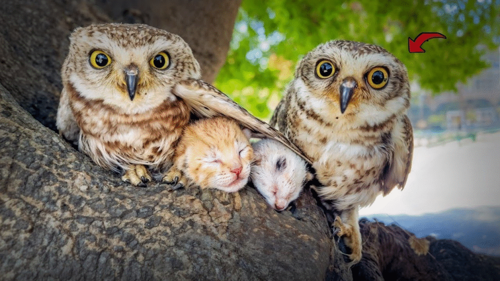 This strange but beautiful bond between predator and prey reminded everyone that compassion can come from the most unexpected places. In the heart of the forest, high above the ground, an owl had offered shelter to the helpless—and in doing so, saved two tiny lives.