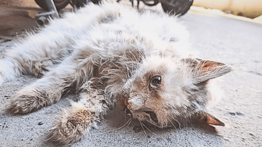 She was lying in the dirt, motionless, just a fragile shape hidden in the shadows of a back alley. Her fur was matted with blood and mud, her breathing shallow, and her eyes barely open. The injured stray cat had been through something terrible—hit, perhaps, or attacked—but no one really knew. What was certain was that she was dying, and no one had stopped to help.