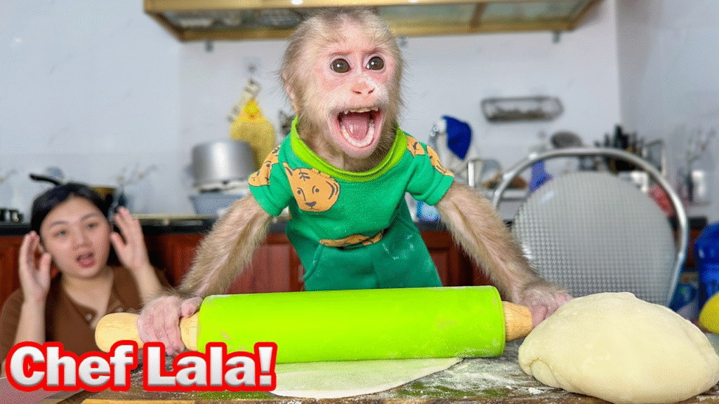That day, the kitchen wasn’t just filled with the smell of fresh muffins—it was filled with joy, pride, and a little monkey who had just proven she could bake with the best of them. 🍌🧁🐒❤️