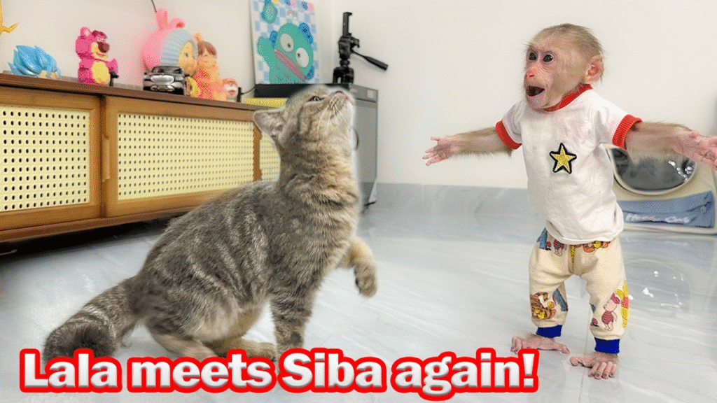 The kitten chirped again and ran toward her, brushing up against her legs like no time had passed at all. Lala sniffed and circled, stunned but thrilled. She let out a playful bark, tail wagging wildly, then suddenly stopped—almost as if needing a second to process it. Was she dreaming?