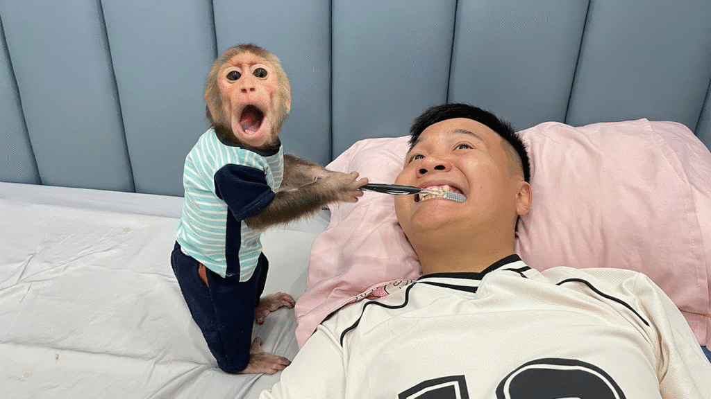 Hilarious! Cubis the Monkey Tries to Wake Dad Up! 😆🐒
