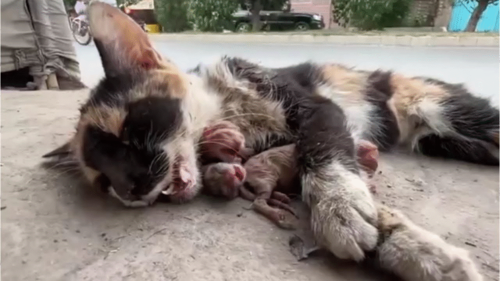 On the side of a quiet road, a mother cat lay injured, barely clinging to life. She had been struck by a car and dragged herself to a nearby bush for shelter. Though in pain, she had one purpose—to protect the tiny lives inside her. With determination that only a mother could possess, she gave birth beneath the cold leaves, hidden from the world. Her kittens were small, fragile, and hungry. Their tiny cries echoed into the stillness, pleading for someone—anyone—to hear them.