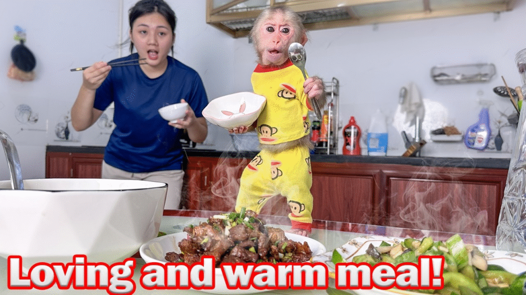 The kitchen was warm and filled with the smell of steamed rice and sautéed vegetables. It wasn’t a fancy dinner—just a simple meal made with whatever was fresh from the garden. But to Lala, it was perfect. She sat at the little table, swinging her legs happily as Mom placed two bowls in front of them.
