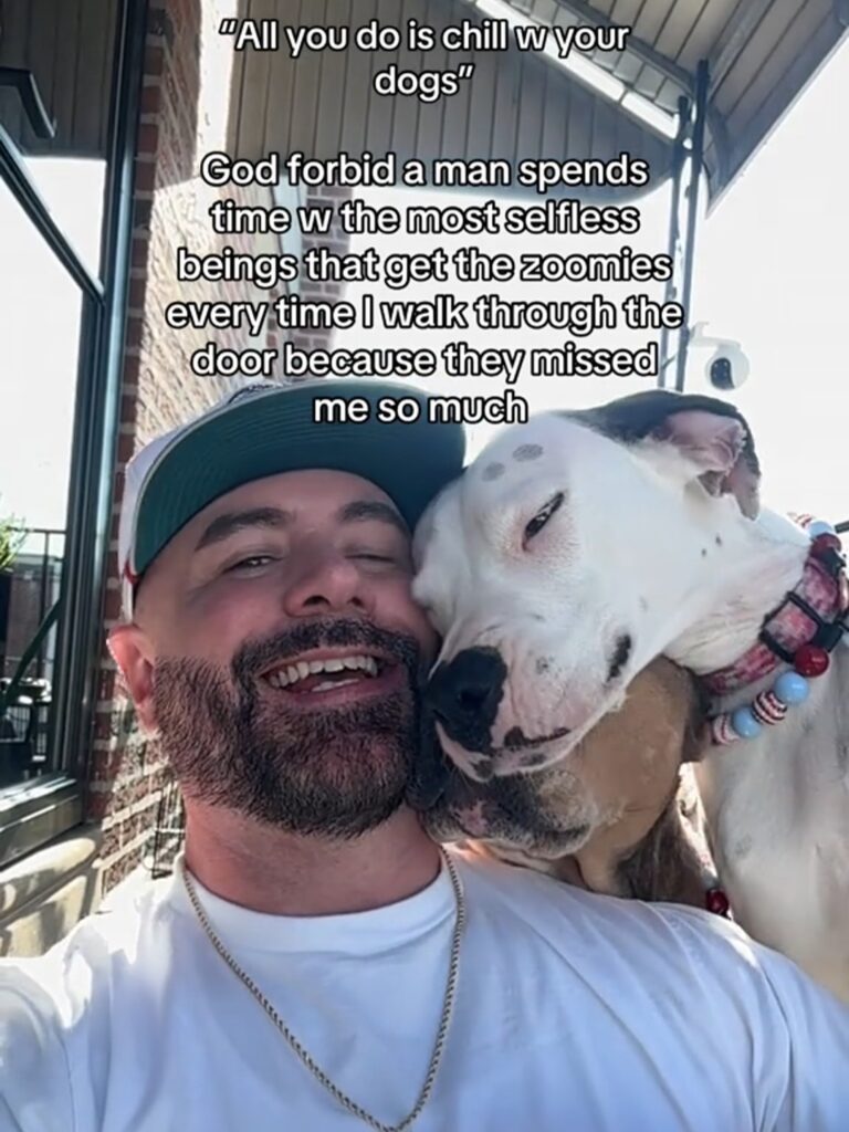 “God forbid a man spends time w the most selfless beings that get the zoomies every time I walk through the door because they missed me so much.”