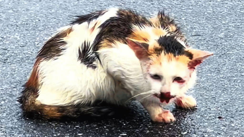 The world carried on as if he didn’t exist. Feet passed by in the distance, cars rumbled down the road, and the sounds of daily life continued uninterrupted. The little cat let out a weak, broken cry, as if calling out to anyone who might hear: Please… don’t leave me here.