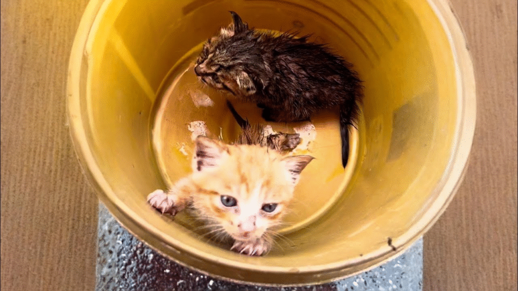 It was a quiet afternoon when I spotted them—two tiny shapes huddled near the corner of the road. At first, I thought it was just some trash or maybe fallen leaves, but as I stepped closer, my heart sank. There, trembling and hungry, were two poor kittens, no more than a few weeks old. Their fur was dirty, their little bodies so thin, and their wide eyes seemed to plead for help.