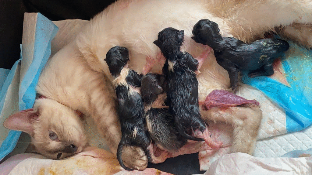 Although the scene may appear messy, every step has a purpose. The mother cat often eats the placentas, which is a natural behavior that gives her nourishment and keeps the birthing area clean. It’s a part of the cycle that humans sometimes find surprising but is perfectly normal.