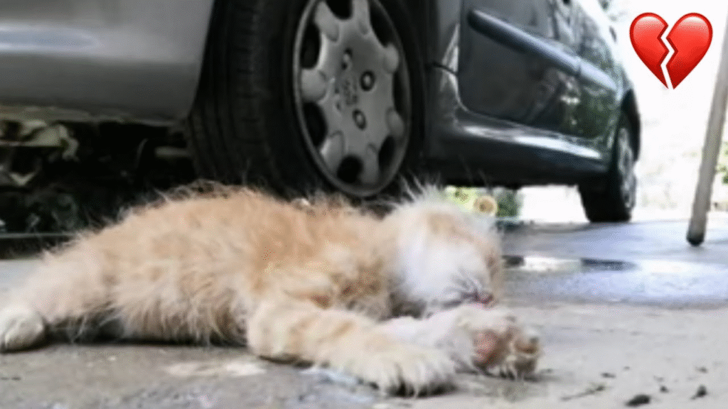 On a quiet street, hidden beneath an old pile of wood, lay a fragile little kitten whose tiny body trembled with each shallow breath. Her fur was matted, her eyes half-closed, and her meows were no longer cries of life but faint whispers fading into silence. It was clear she had been battling hunger, cold, and loneliness for far too long. Every breath she took felt like a fight, as though her spirit was clinging desperately to the smallest thread of hope.