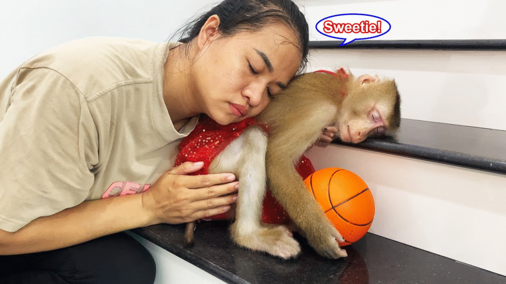The sun was shining brightly, and little Monkey Lyly’s energy was at its peak. She spotted her favorite soccer ball in the corner of the yard and instantly had an idea. With wide, sparkling eyes, she ran to her mom, clutching the ball tightly in her tiny hands. “Mama! Play soccer with me!” she begged, bouncing up and down with excitement.