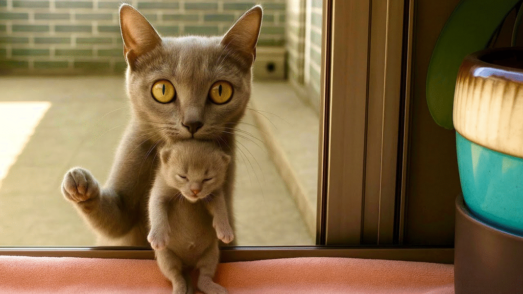 It was an ordinary afternoon when a soft scratching sound came from the window. At first, no one paid much attention, thinking it was just the wind. But then, to everyone’s amazement, a stray cat appeared—pushing herself carefully through the open window. She wasn’t alone. Clutched gently in her mouth was a tiny kitten, no more than a few weeks old.