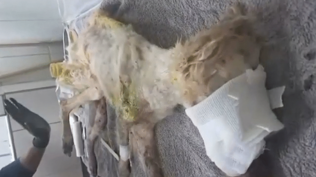 When rescuers first found him, the sight was heartbreaking. His fragile body was little more than skin and bones, his ribs showing clearly with every breath. Left alone and abandoned, he had wandered the streets in search of food, scavenging scraps that barely kept him alive. His eyes, once full of innocence, reflected only exhaustion and pain.