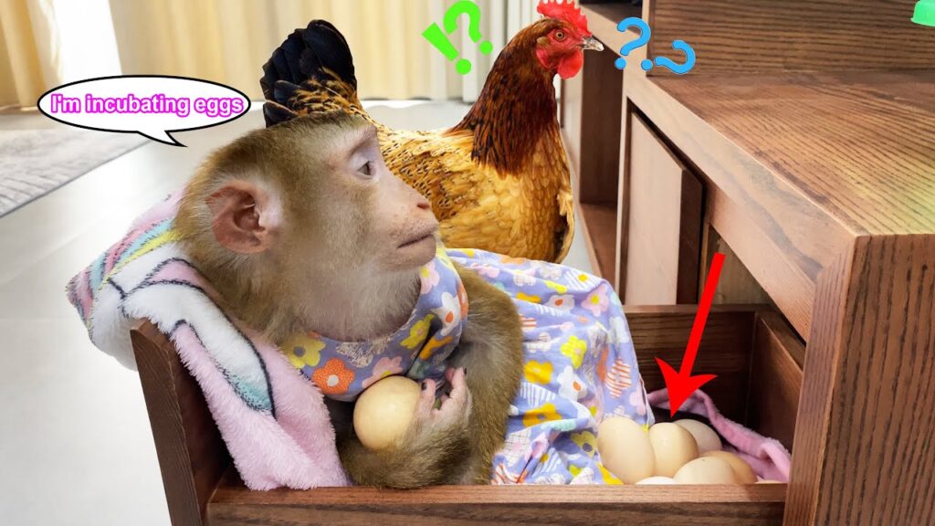 Monkey Lyly had always been full of wild ideas, but nothing prepared us for her latest adventure. One morning, while everyone was busy feeding the animals, Lyly noticed the hens laying eggs in a quiet corner of the coop. Her little eyes widened with curiosity and wonder. She had seen mother hens warming their eggs and later welcoming tiny chicks. In her mischievous mind, Lyly decided she wanted to be a mother too.