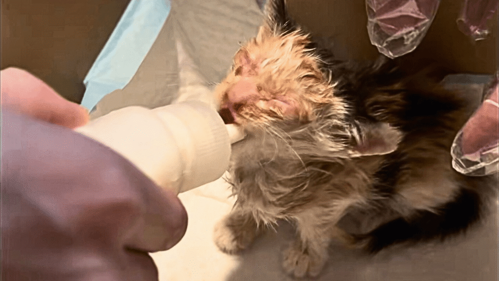 It was late afternoon when I first heard the soft, broken meow. I turned and saw a tiny kitten, frail and trembling, stumbling toward me. His eyes were clouded—blind. Yet, despite the darkness around him, he moved with desperate determination, trying to follow the sound of my footsteps. Each time I stepped away, he cried louder, as if pleading, “Don’t go… can you take me home?”