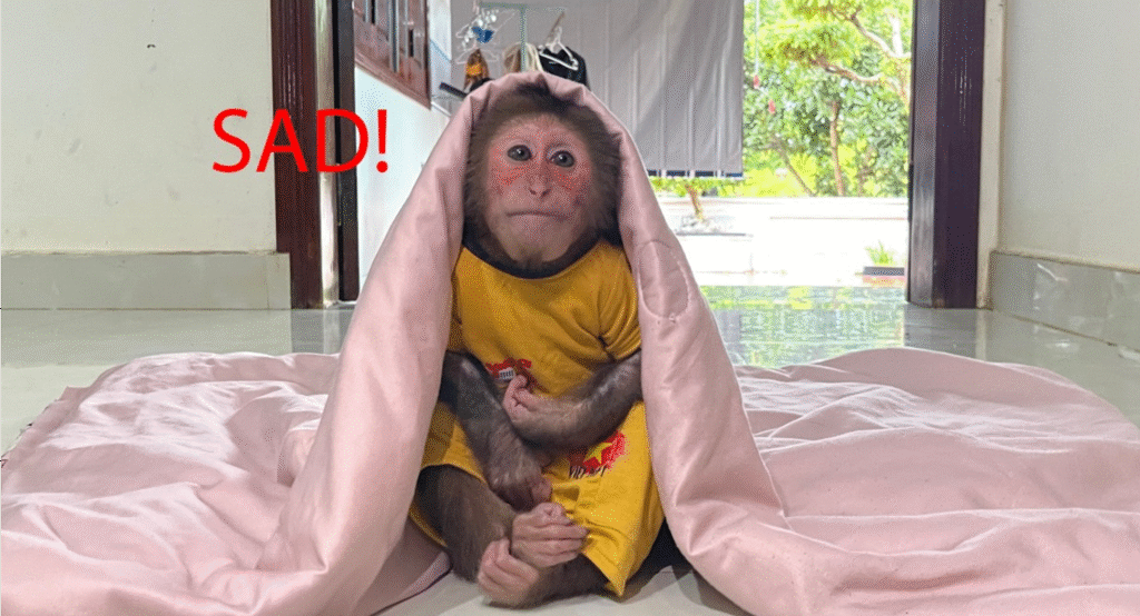 The morning sky was dark and heavy with rain, and the soft pattering of raindrops against the window woke little Monkey Cubis earlier than usual. He yawned and rubbed his sleepy eyes, expecting to hear the familiar sound of Dad preparing breakfast or calling his name with a cheerful, “Good morning, Cubis!” But today, the house felt unusually silent. Dad had left early for an important trip, and Cubis was already missing him terribly.