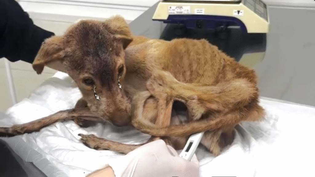 When they arrived at the clinic, the vet team rushed over, shocked by her condition. She had clearly been starving for a long time. Her bones were fragile, and her eyes told the painful story of abandonment. Carefully, they placed her on the examination table, and for the first time in what felt like forever, she felt warmth—loving hands cleaning her wounds and giving her water. She was given a cozy blanket, and as she lay wrapped in kindness, something inside her shifted.