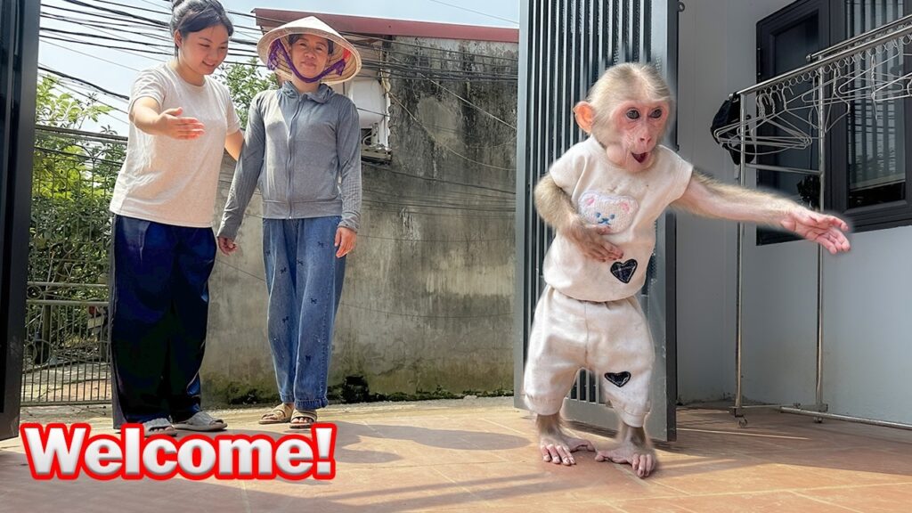 It was a peaceful Sunday morning, and little Lala the monkey was busy playing in her room, stacking colorful blocks into a tall tower. She hummed happily until she heard a car door slam outside. Curious, she peeked through the window and gasped. A familiar yet slightly unfamiliar figure was stepping out of the car—a monkey lady with silver fur and a warm smile. Before Lala could ask what was happening, Dad rushed in excitedly and said, “Lala! Grandma is here!”