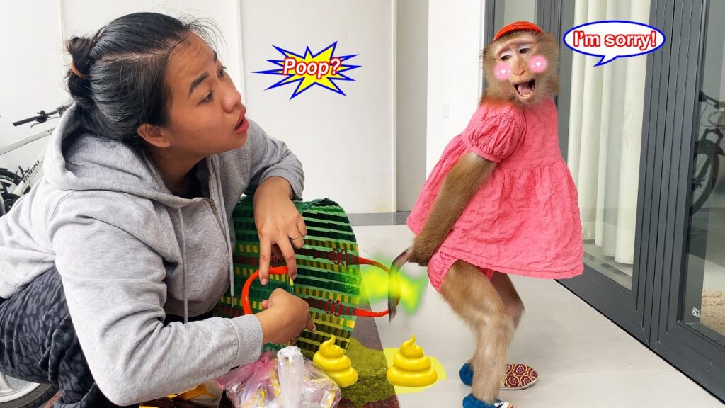 Still embarrassed, Lyly clung to Mom’s neck while they finished shopping with a new basket. But as they reached the checkout, a silly little boy spotted her and yelled, “Hey! That monkey has the fastest poop in aisle three!” Everyone laughed—including Lyly this time.
