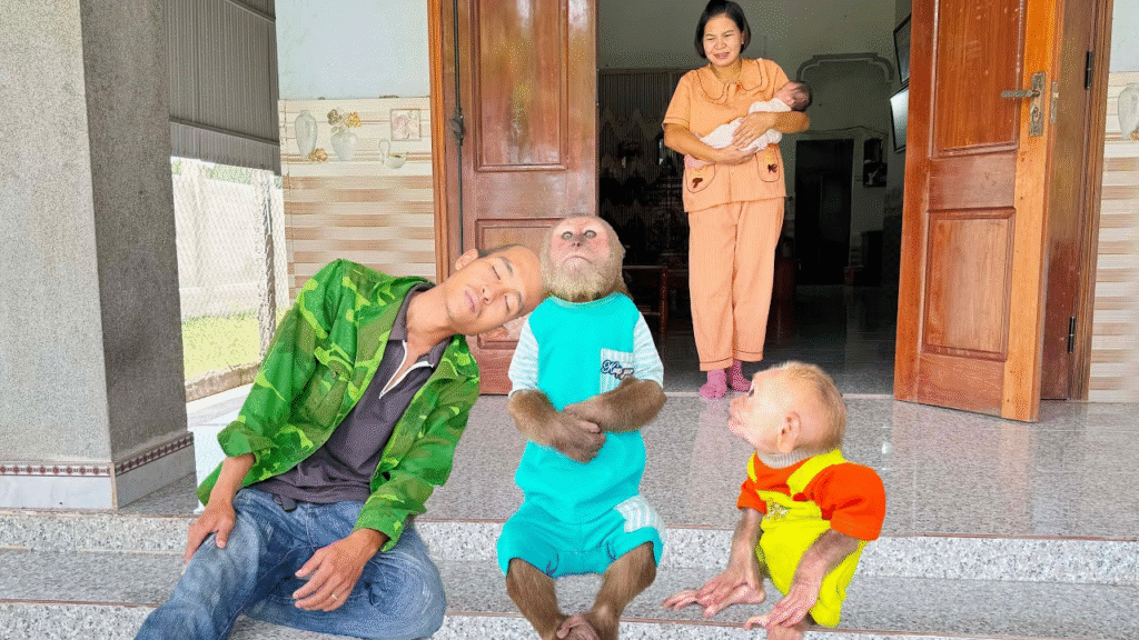 Dad’s eyes sparkled with tears—not from his cold, but from pure happiness. “I feel better already,” he whispered, hugging both monkeys close.