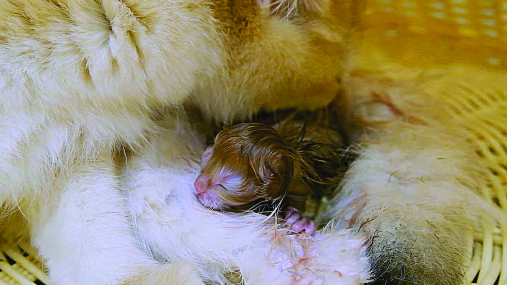 Tonight, under the gentle moonlight, a new family was born—four tiny kittens and a brave, loving mother.