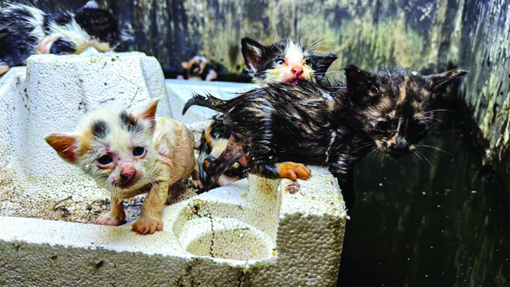 The rain poured relentlessly, turning the quiet alley into a stream of murky water. Amid the chaos, a terrified feral cat struggled against the cold, her fur soaked and heavy. When a rescuer spotted her, he realized it wouldn’t be an easy mission. A wet and frightened cat can become aggressive, not out of malice, but pure survival.