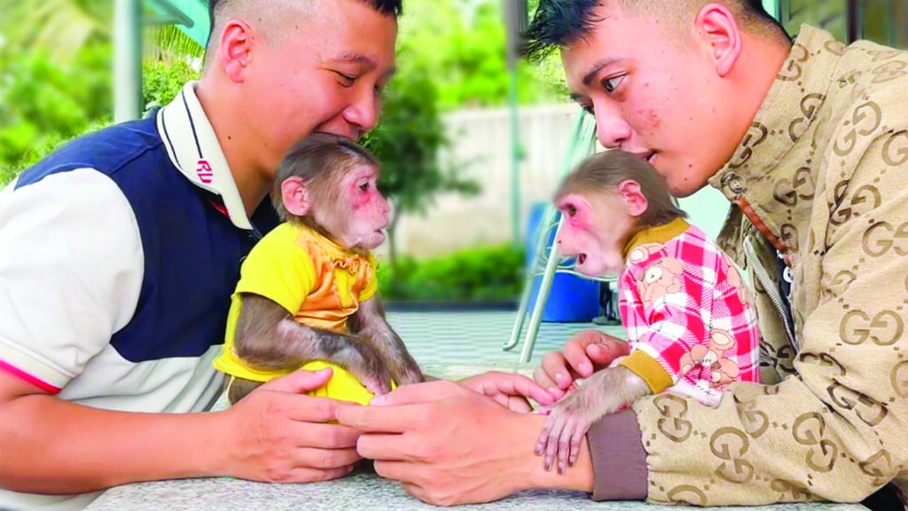 When they arrived, Cubis peeked from behind Dad’s leg. Standing outside the cozy tree home were two monkeys: Thang, who seemed bold and curious with big sparkling eyes, and Luk, a bit shy but wearing the most adorable smile. Both stared at Cubis like he was the most interesting thing they had ever seen.