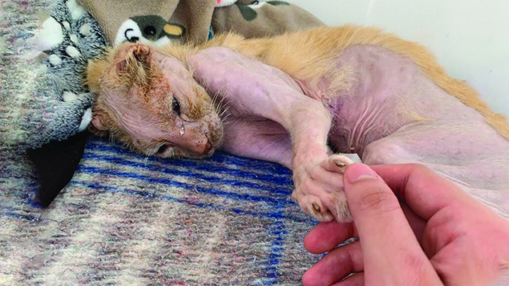 Slowly, his eyes opened—confused at first, then searching for something familiar. When he saw me, a soft whine escaped his throat. With all the strength he had, he lifted his little head and reached out his paw to my hand.