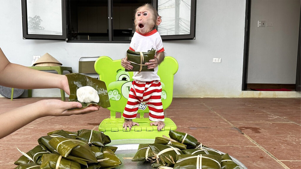 First, they began with mixing the sticky rice flour and coconut milk. Lala stirred the bowl carefully, though sometimes the flour puffed up and landed on her nose, making Mom laugh. Then came the part she loved most—adding the fragrant pandan juice that turned the batter a lovely green. Together they poured the mixture into small banana-leaf molds, folding the leaves gently so they wouldn’t tear.