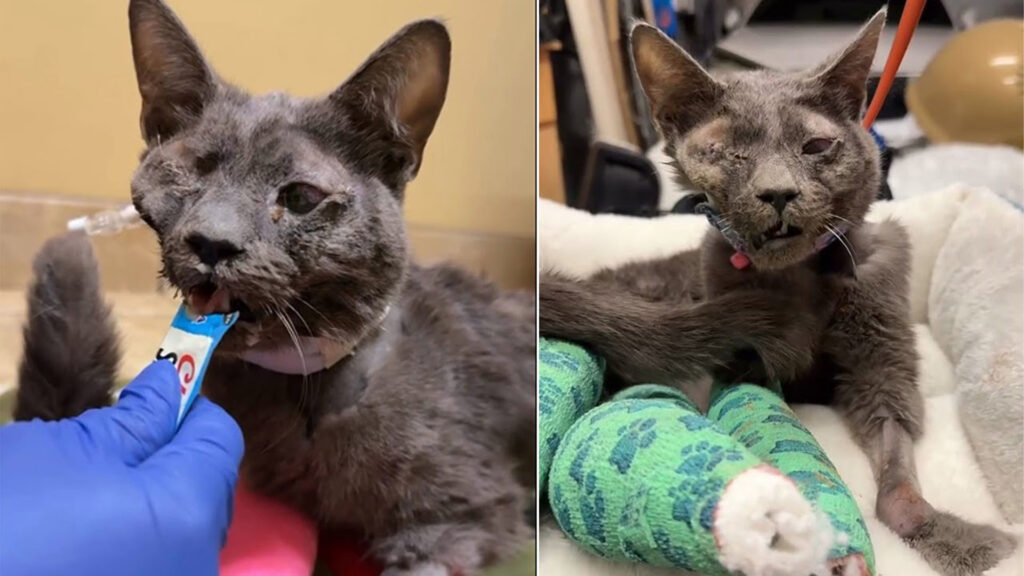 Soon after, she began licking her food, then took her first unsteady steps. The clinic erupted in cheers. Even those who had doubted her survival stood in silent admiration, their hearts full of respect for her unbreakable spirit. Each day she grew stronger, wagging her tail as if to thank those who never stopped believing in her.