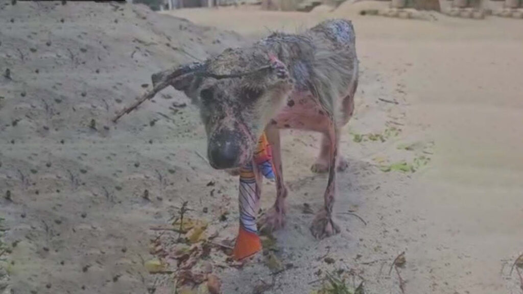 She was just a small, frail dog—her ribs visible beneath her dull, patchy fur, her eyes filled with quiet pain and desperation. For days, she wandered the streets, limping from one corner to another, hoping that someone—anyone—would stop to help her. But instead of kindness, she was met with cruelty. When she approached people with her tail tucked and her body trembling, some turned away in disgust. Others yelled, threw stones, and chased her off as if she were something filthy, not a living soul in need
