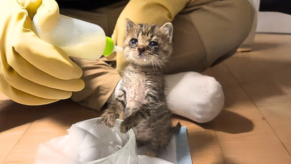 Rain poured endlessly from the gray sky, drenching the streets and filling every corner with puddles. In the middle of the cold, empty road, a tiny kitten sat shivering, her fur soaked through, her little body trembling from the chill. She was no more than a few weeks old, fragile and weak, her soft paws sinking into the muddy water. Each time thunder rumbled, she flinched, curling tighter into a ball.