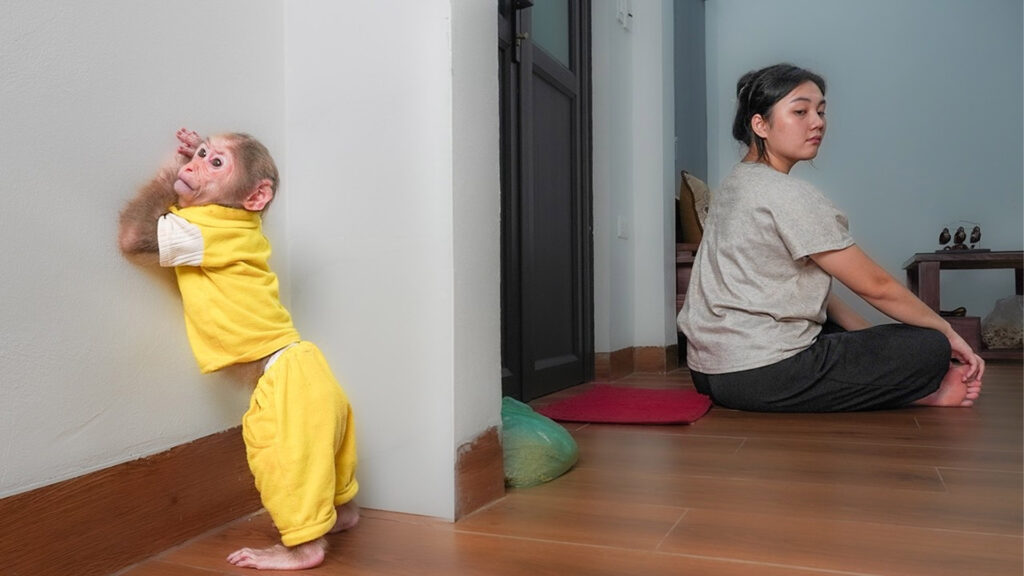 Little monkey Lala sat quietly by the window, her tail curled around her knees. Usually, mornings were filled with laughter and hugs from her mom, but lately, things had changed. Mom had been so busy—cleaning, cooking, and caring for baby Lulu—that she barely had time to play with Lala. Every time Lala tried to talk, Mom would say, “Not now, sweetheart, I’m busy.” Those words felt heavier each day.